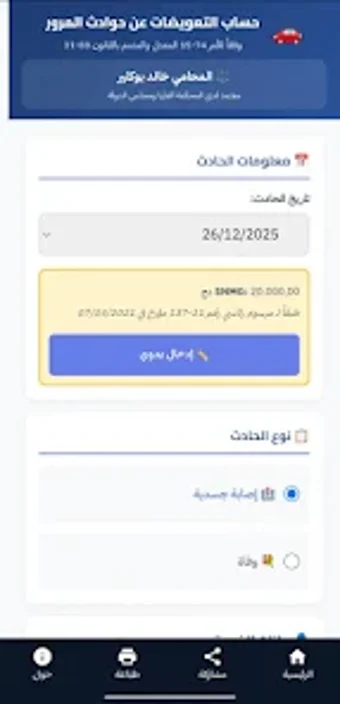 تعويضات 74-15 is a legal utility application designed for estimating traffic accident compensations in Algeria. It provides users, including lawyers, judges, and insurance companies, with a tool to calculate compensations based on Algerian law, specifically ordonnanceand loiThe app allows users to enter essential data such as the accident date, age, disability percentage, medical expertise, and beneficiaries to generate quick and organized results.